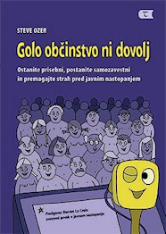 Samozavest naj bi si zgradili s predstavitvami v klubu Toastmasters. To so neprofitni izobraževalni klubi, kjer lahko postopoma izboljšate veščine javnega nastopanja in komunciranja – in kjer se vam ne bo nihče smejal, če vam v začetku ne bo šlo. Tudi v Sloveniji je že prvi klub Toastmasters Ljubljana, kjer lahko dobite več informacij, tipi nastopov pa so dobro opisani tudi v Ozerjevi knjigi.